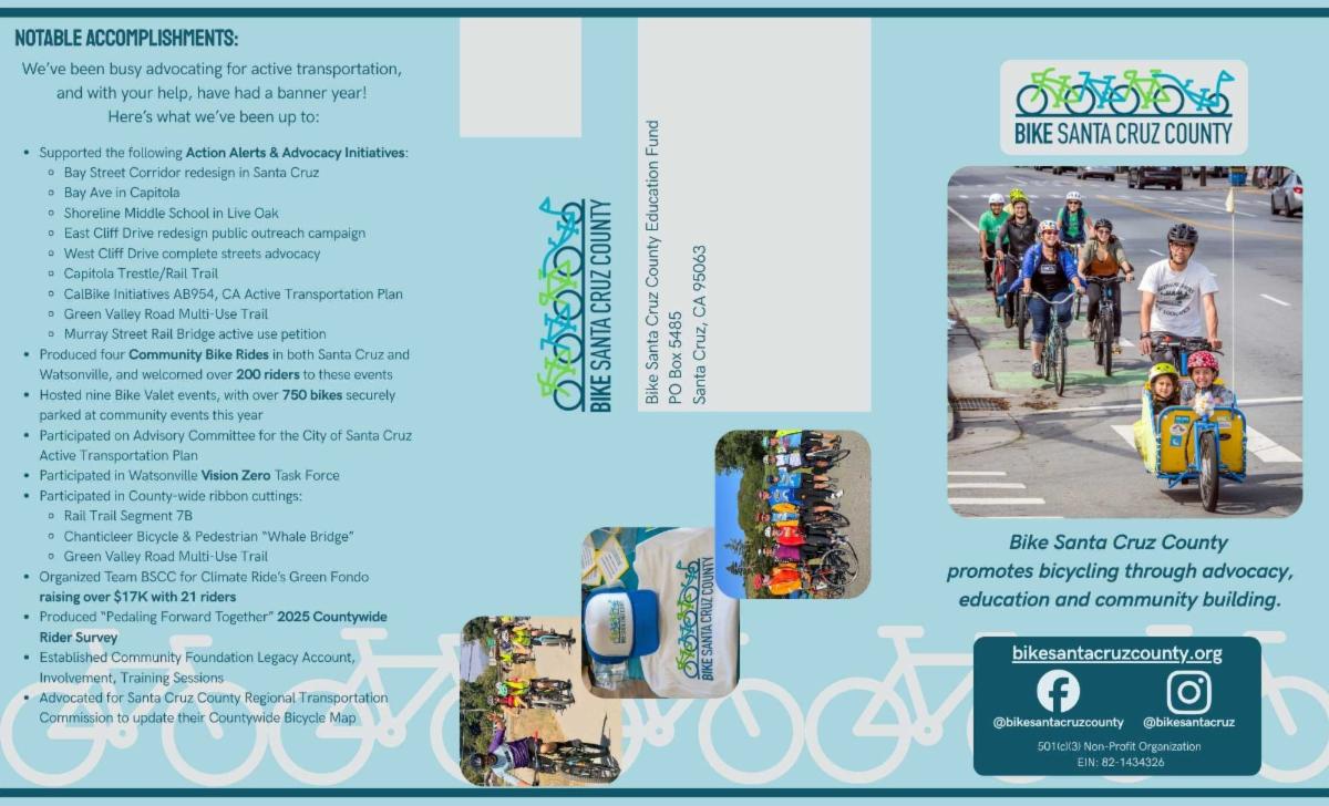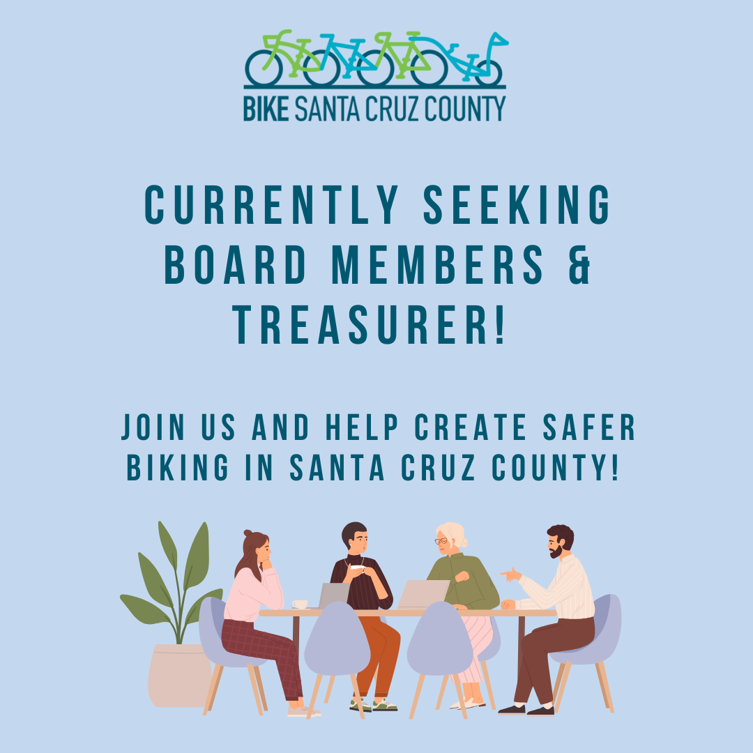 Bike Santa Cruz County is growing, and we’re looking for a few new board members, especially a Treasurer. If you care about safer streets, better bike routes, and making Santa Cruz County a place where biking works for everyone, we’d love to have you join us.