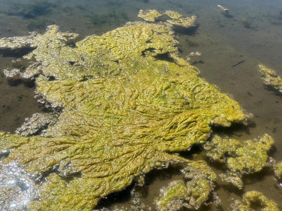 Filamentous green algae, while unsightly in swimming waters, is not toxic.