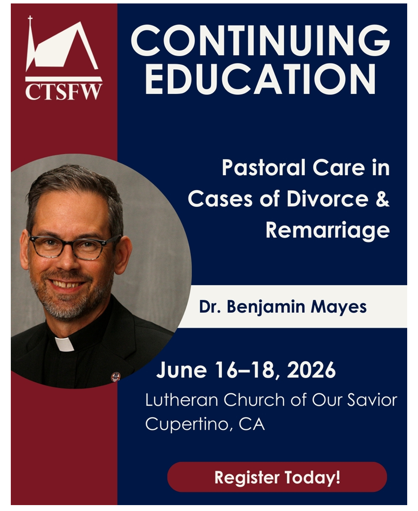 Issues of divorce and remarriage often beset pastors who try to remain faithful to God’s Word and yet are not always sure how to apply Scriptural principles to the messy situations of people's lives. This class will examine divorce and remarriage, bringing the insights of Biblical exegetes, the Reformers, and Lutheran Orthodoxy into conversation with contemporary situations.