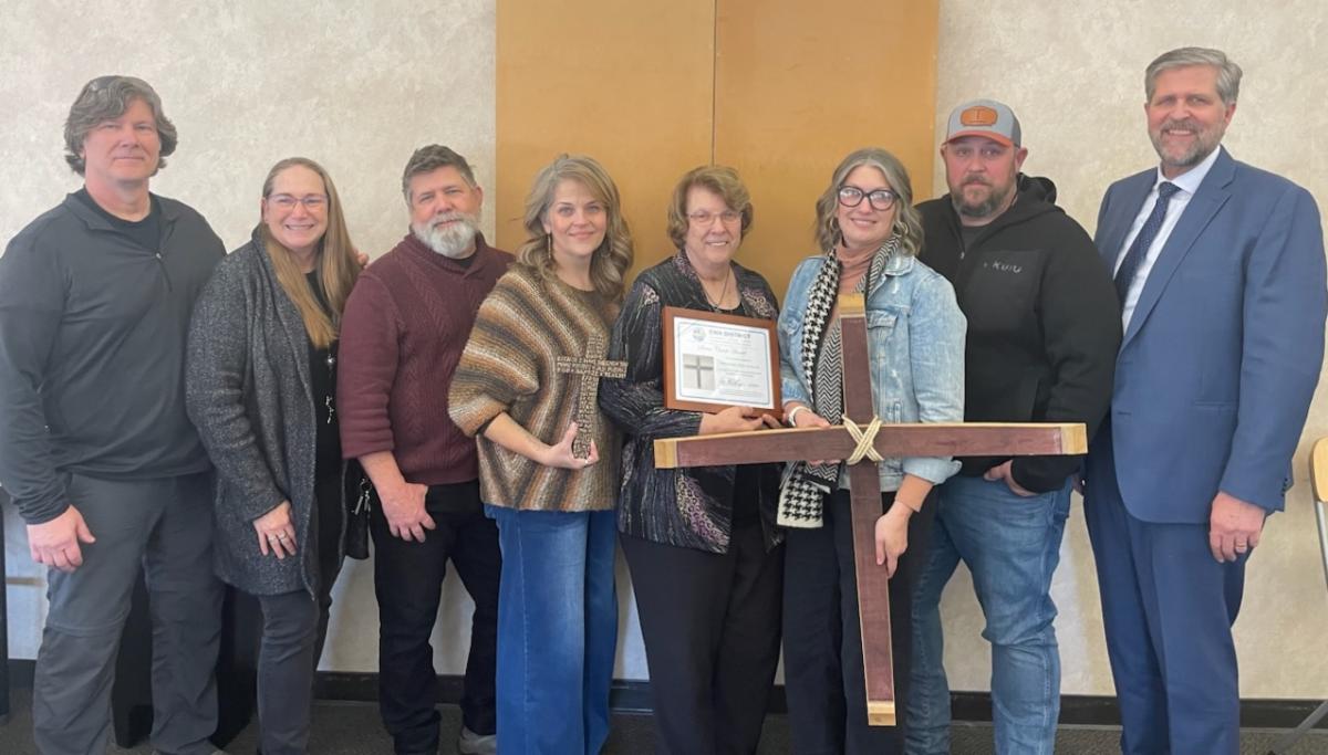 Pictured are Ted’s wife Jerilyn in the center with l-r Timothy Mueller (Kate), Christine Dechert (Bob), Amanda Kitchens (Chad), and CNH President Mike Lange, who all attended the celebration.