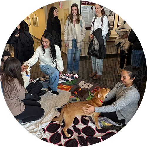 The NYMC community pressed pause on a packed semester to unwind at the Office of Student Mental Health and Wellness’s Pet the Stress Away on February 25. In partnership with Paws Crossed Animal Rescue, the feel-good event transformed an ordinary day into a tail-wagging treat, where students, faculty, and staff recharged alongside Luge and Curly, the playful, affectionate puppies.