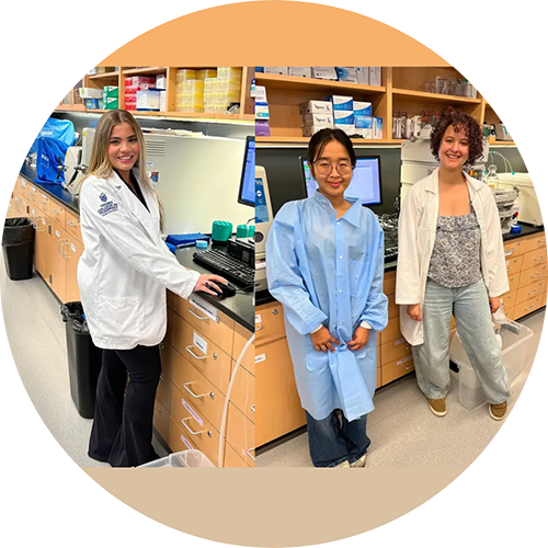 Research between Touro College of Pharmacy (TCOP) and NYMC is exploring the shelf‑stability and sterile compounding of banana bags—a project involving students and faculty, including Joseymi Goris, left, TCOP Class of 2028, and Natalie Tran, center, SOM Class of 2028, and Lydia Jackson, right, SOM Class of 2028—to reimagine this hospital staple.