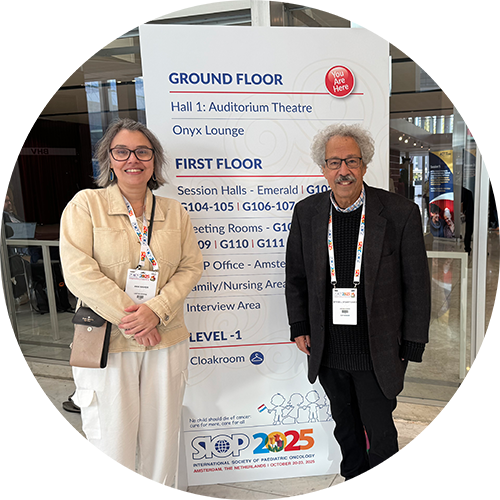 Mitchell S. Cairo, M.D., professor of pediatrics, medicine, pathology, microbiology and immunology, and cell biology and anatomy, and vice chair of the Department of Pediatrics, was invited to give an oral presentation at the 57th Congress of the International Society of Pediatric Oncology in Amsterdam, October 20-23. He presented “Final Results of The Safety and Efficacy of Related Donor-Derived CMV and ADV Cytotoxic T-Lymphocytes (CTLS) in Children and Adolescents with Medically Refractory Infections.” Dr. Cairo is pictured with one of his collaborators, Ana Xavier, M.D., professor of pediatrics, Heersink School of Medicine.