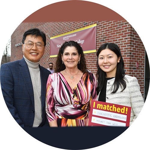 In recognition of World Radiography Day on November 8, which marks the anniversary of the discovery of X-rays in 1895, Susan Rachlin, M.D., FACR, center, senior associate dean for student affairs and associate professor of radiology, looks back on serving as the career specialty advisor for two generations of alumni: radiologists Iris Kwak, M.D., '24, and her father, Jinhee Kwak, M.D. ’99.