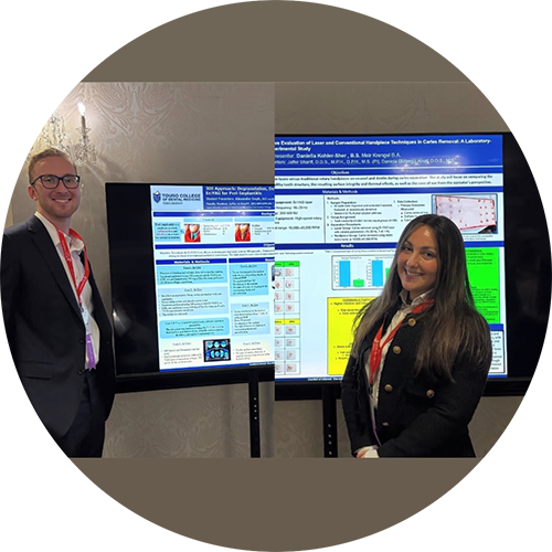 Alexander Smyke, left, TCDM Class of 2027, left, and Daniella Kohler, right, TCDM Class of 2026, represented TCDM with pride and professionalism at the Academy of Laser Dentistry Annual Conference in September in Washington, D.C. Smyke presented a poster, “3DI Approach: Degranulation, Debridement, Decontamination, Implantoplasty Using Er:YAG for Peri-Implantitis,” which took third place. Kohler, presented a poster, "Comparative Evaluation of Laser and Conventional Handpiece Techniques in Caries Removal: A Laboratory-Based Experimental Study.” Their faculty mentors were Daniella Gurpegui Abud, D.D.S., M.S., assistant director of screening, emergency, and referral, and Jaffer A. Shariff, D.D.S., M.S., M.P.H., D.P.H., director of research, respectively.