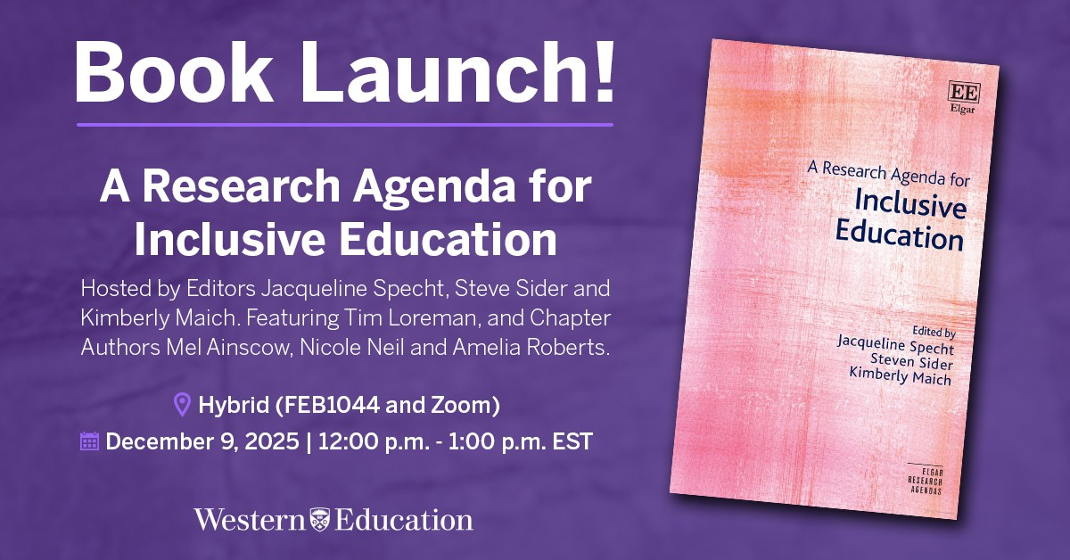 Check out the book launch of A Research Agenda for Inclusive Education, written by Inclusive Education Canada associates Jacqueline Specht, Steven Sider, and Kimberly Maich!