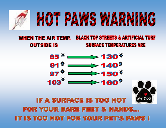 As temperatures rise, be sure to check surface temperatures before bringing your dog outdoors. If a surface is too hot for your bare feet, it's too hot for your pet's paws.