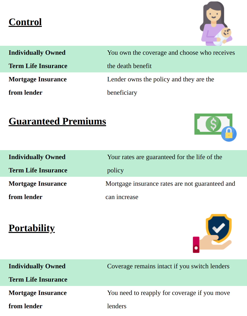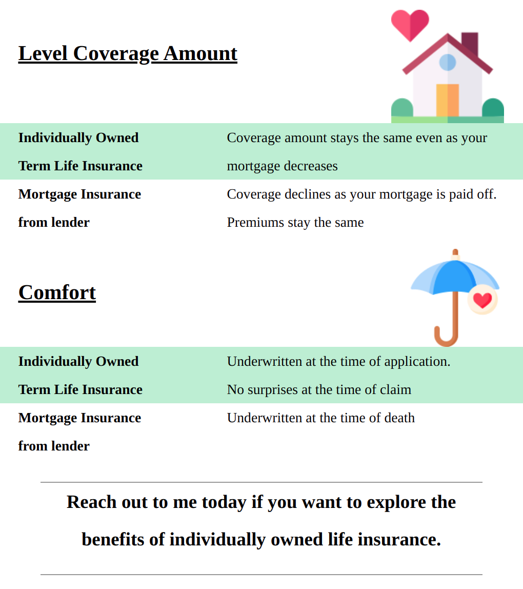 When taking out a mortgage with a lending institution you should cover off that debt with an insurance policy. Not all coverage options are created equal. Let's look at the highlights of the two options available to you.