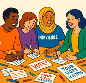 IndivisibleWIN is part of a nationwide grassroots movement to preserve our democracy: of, by, and for the people. We are a welcoming community of neighbors who take action here at home—organizing, educating, and showing up—to strengthen democratic values and stand united against authoritarianism and hate.