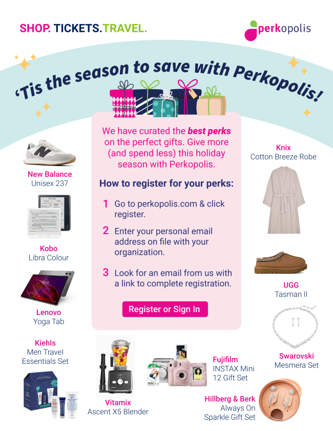 The holiday season is here—and so are exclusive Perkopolis savings on gifts, travel, entertainment, wellness, and more. As part of your exclusive perks program, you have access to over 5,000 offers to help you stretch your budget this season.