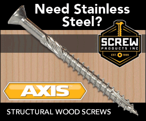 Get the best corrosion protection for your build with Stainless Steel Fasteners from Screw Products, Inc.! Our AXIS™ Structural Wood Screws, EPIC™ Trim Screws, PICO™ Finish Screws, AURA™ for Cabinetry & More and our C-Deck Composite Deck Screws will help you complete your building needs when only Stainless Steel will do!...Read More