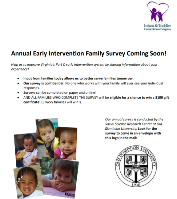 INFANT & TODDLER CONNECTION OF VIRGINIA | Looking for the most up-to-date version of the Part C Practice Manual...upcoming meeting dates...or even a new career opportunity? You'll find plenty of helpful information on the Infant & Toddler Connection of Virginia's early intervention website! Be sure to visit and bookmark itcva.online. | | |