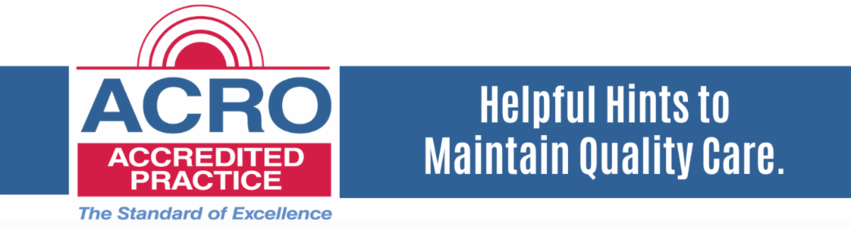 We hope your practice is enjoying the benefits of being accredited by the American College of Radiation Oncology (ACRO). As a valued ACRO Accreditation partner, our goal is to help you make the most of your accreditation, even when you are not actively going through the survey process. We hope you find today's tip helpful!