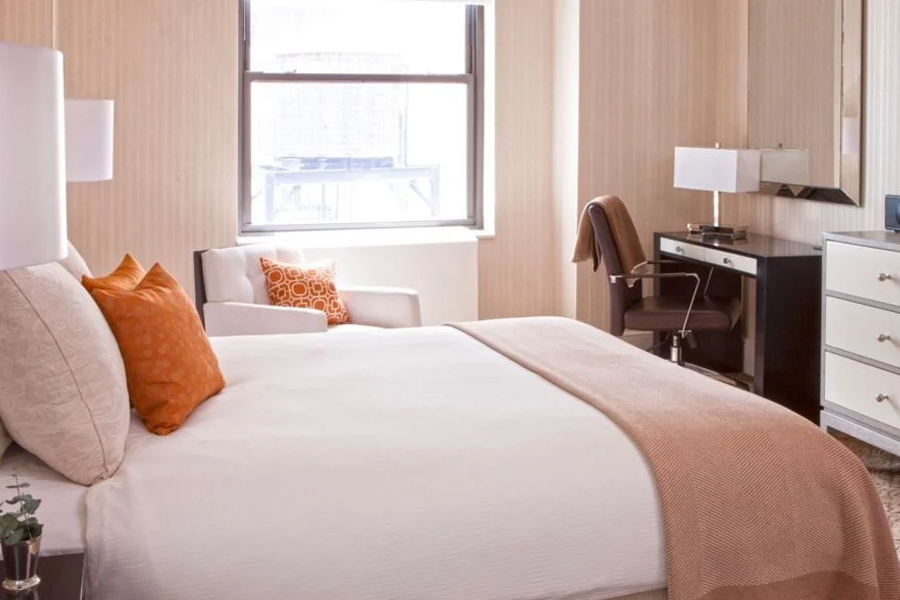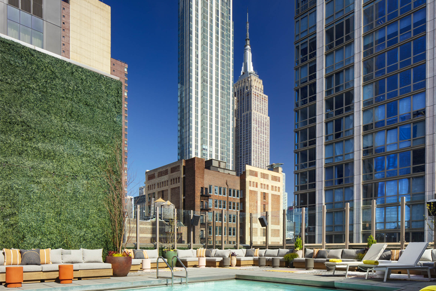 Ideally located in Manhattan's historically significant and popular NoMad district, Royalton Park Avenue creates a truly relaxed destination while maintaining the cachet of Manhattan’s most iconic address. Royalton Park Avenue combines luxury and trendiness, in the center of the city’s most influential happenings. Boasting 249 oversized luxury guestrooms and 36 remarkable suites, most with lofty ceilings, floor to ceiling windows, Juliet balconies, and 5 fixture bathrooms. Royalton Park Avenue’s most desired hidden gem, its 40-foot rooftop heated pool, is open year-round and has direct views of the Empire State building. The property perched on the corner of 29th Street and Park Avenue could not be more ideal for a travelers next New York City stay, whether for leisure or business, the hotel can accommodate all. | |