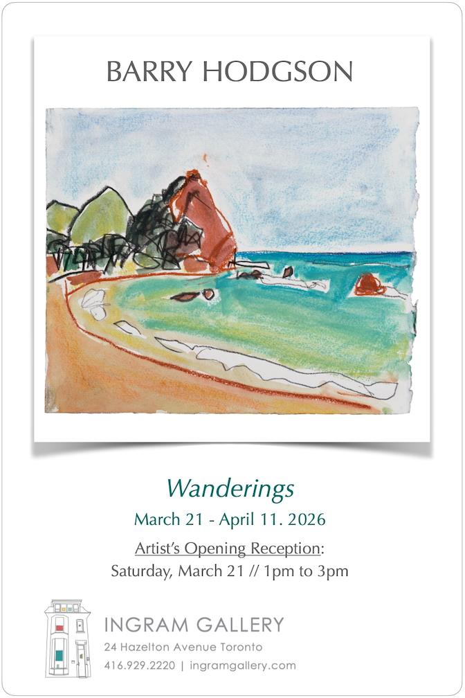 Their works come together in Letters of Art, a thoughtful two-person exhibition on view February 12 through 28, 2026. The show offers an intimate exchange between generations: one shaped by mid-century Toronto's bohemian energy, the other by a life of quiet reinvention and travel.