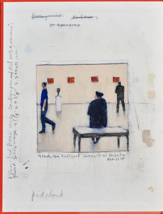 Study for “Red Cloud” - Queen St. W. Toronto, 2009 - oil, pencil, bee’s wax on recycled book cover, 11.25 x 8.5 inches
