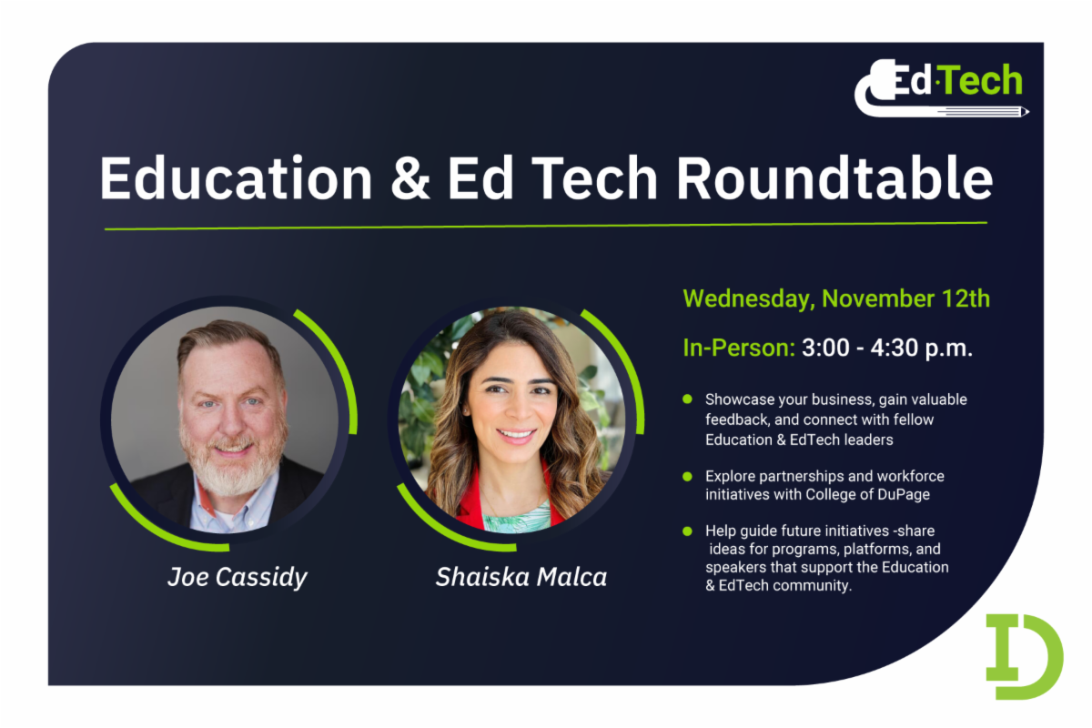 Join us for an exclusive roundtable designed for Innovation DuPage members working in Education & EdTech. This is your chance to showcase your work, explore partnerships with College of DuPage, and help shape the programs and resources our community needs. Connect with fellow leaders who get what you're building and share the insights that will guide our future initiatives. This event is exclusive to ID members.