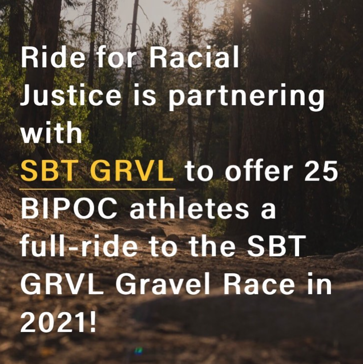 Ride for Racial Justice in partnership with SBT GRVL has created a program to offer 25 secured spots for Black, Indigenous and People of Color (BIPOC) cyclists at the starting line of the 2021 SBT GRVL race taking place in Steamboat Springs, Colorado on August 15th, 2021.