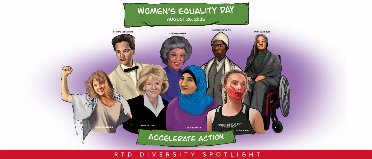 | RTD increases fare checks on rail system by over 500% since May 2024 | The agency is working to ensure that individuals on light rail and commuter rail trains are customers who have paid fare to board. With approximately 100 officers in the Transit Police Department (RTD-PD), the department’s growth has afforded increased patrolling across RTD’s stops and stations, including on the agency’s vehicles. | | RTD-PD, Axon team up to introduce VR training for Transit Police officers | Virtual reality (VR) has redefined how people experience and interact with the world, blurring the line between the digital world and real life. With a simple VR headset, people can now immerse themselves in whatever world they can imagine. Thanks to advancements in technology and availability, VR is more popular and accessible than ever before at the consumer level. | | Diversity Spotlight: Women's Equality Day – Accelerate Action |