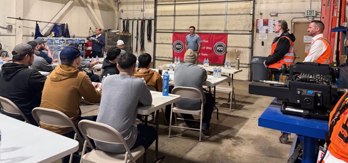 | | Caitlin Magee, Data Analyst II, Light Rail Operations (20 years) | | | | “I am a person who is committed to lifelong learning, whether it's reading, traveling, listening, or activating my brain through learning. That is probably how I would define myself: I want to know the why of things, or how things work or how things make people feel or what people enjoy, why they enjoy it, what is it that brings joy to your life. One of the things that brings a lot of joy to my life is constant learning. What can I learn today that I didn't know yesterday? What can I explore? What can I experience? I'm very much about being present for life." | | N Line MOW recognizes accident-free milestone | | General Superintendent of Infrastructure and MOW Brady Hollaway speaks to crew members. | | On Feb. 4, the N Line Commuter Rail Maintenance Of Way team was presented with an award recognizing the team’s commitment to safety, as they had gone 410 days since the last preventable accident. General Manager and CEO Debra A. Johnson provided brief remarks before attendees enjoyed a dinner in celebration of the milestone. Well done, team! | | Every day across the Denver metro area, RTD employees are making lives better through connections. The agency is proud to spotlight our exceptional workforce who go above and beyond in their roles and embody RTD’s core values. Join us in celebrating colleagues who personify the values of passion, respect, diversity, trustworthiness, collaboration and ownership. | | FM supervisor helps talk distressed person off rail tracks | This past Friday, Facilities Maintenance Supervisor Kim Tostenson was out on his rounds and happened to be driving by the Steele Street crossing, which is a grade crossing along the N Line, when he noticed a person lying in the tracks. Kim was able to talk this person off the tracks. | | Bus operator makes customers feel safe, welcome during trip to airport | I would like to recognize Route AB1 operator William Reiss for his outstanding service to all customers on the ride to the airport last week, during which I had the opportunity to observe him on two different occasions. | | |