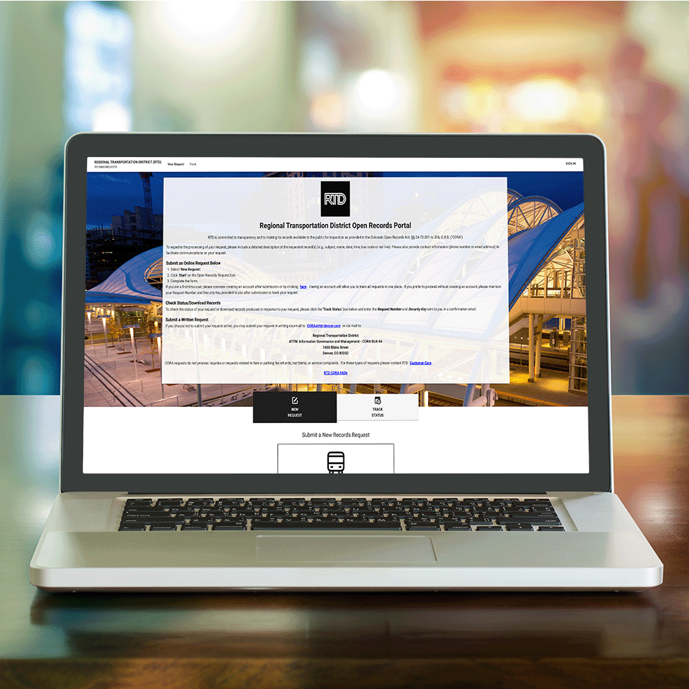Information Governance and Management team debuts new CORA portal | Starting Feb. 1, RTD’s Information Governance and Management (IGM) team introduced a new Colorado Open Records (CORA) request portal and updated the FAQs posed about the CORA process. The portal serves as the entry point for the public to access agency records. | |