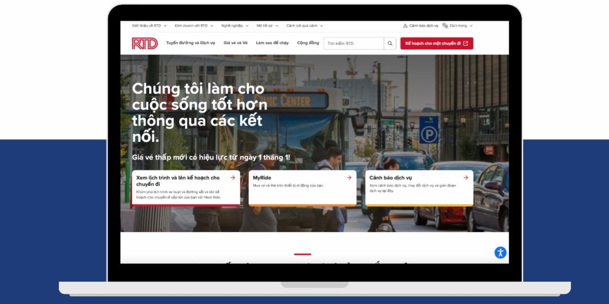 Language access is intrinsic to RTD's mission to make lives better through connections. Regardless of someone's preferred language or cultural background, all customers deserve the ability to reach the places they live, work and play without language acting as a barrier to accessing transit. As part of its Language Access Program, RTD is now providing Vietnamese language translation for all content on the agency's website and, this month, will add accessibility in this language to trip planner and Next Ride. | |