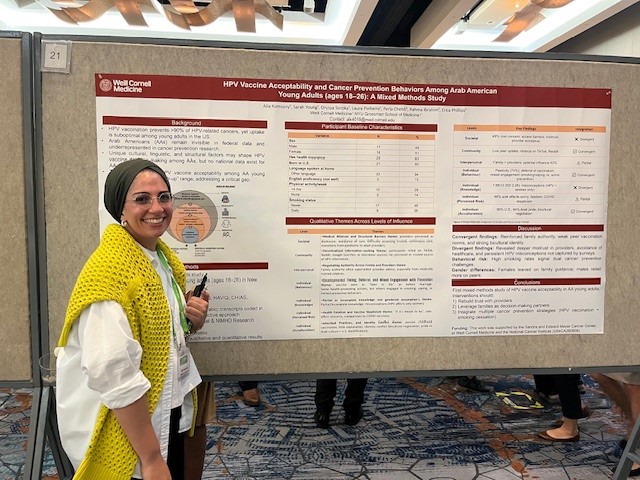 Under the guidance of Drs. Erica Phillips, Laura Pinheiro and Perla Chebli (NYU Langone Health’s Department of Population Health) conducted this first-of-its-kind mixed-methods study, exploring HPV vaccine acceptability among Arab American young adults. The research found that vaccination decisions were shaped by factors such as family, medical mistrust, cultural identity and developmental timing, including the tendency to delay vaccination until marriage.