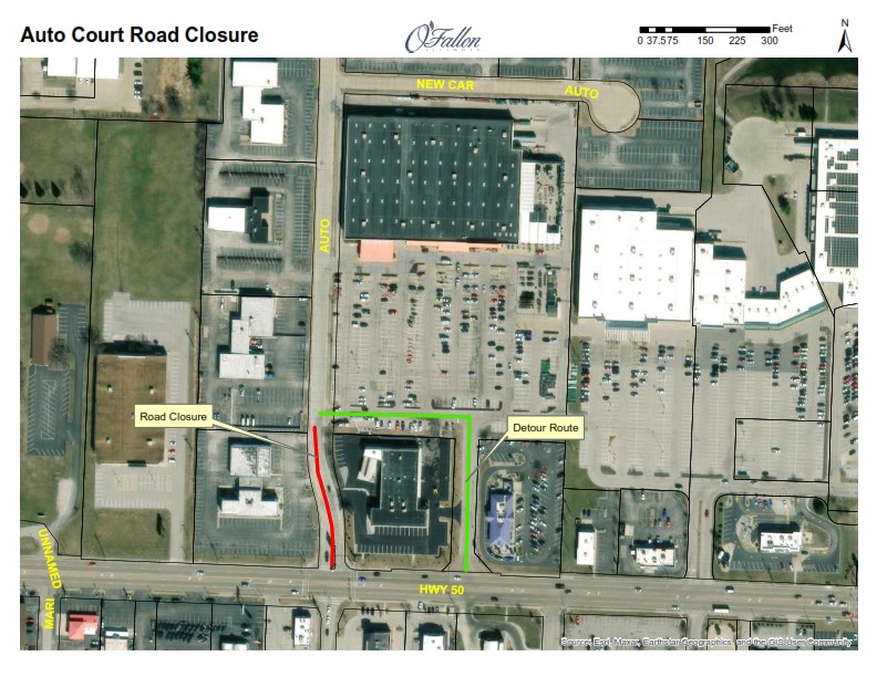 O’Fallon, Illinois - October 22, 2025 – The O’Fallon Public Works Department will be closing Auto Court at the intersection with Highway 50 beginning on Monday, October 27, 2025. The road will be closed to perform pavement repairs. Westbound Highway 50 will also experience lane restrictions during the first week of the closure. Drivers are urged to use the entrance road between Culver’s and Goodwill to access the businesses along Auto Court. This work is expected to be completed by Friday, November 14, 2025, weather permitting.