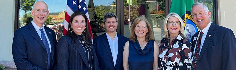 From left: Carl Kleinknecht, President of the Washington Organized Retail Crime Association; Alisha Shemwell, Kemper Development Company, Kent Wilson, Target; US Representative Kim Schrier (D-8); Renée Sunde, WR President & CEO, and Mark Johnson, WR Senior VP of Policy & Government Affairs. | |