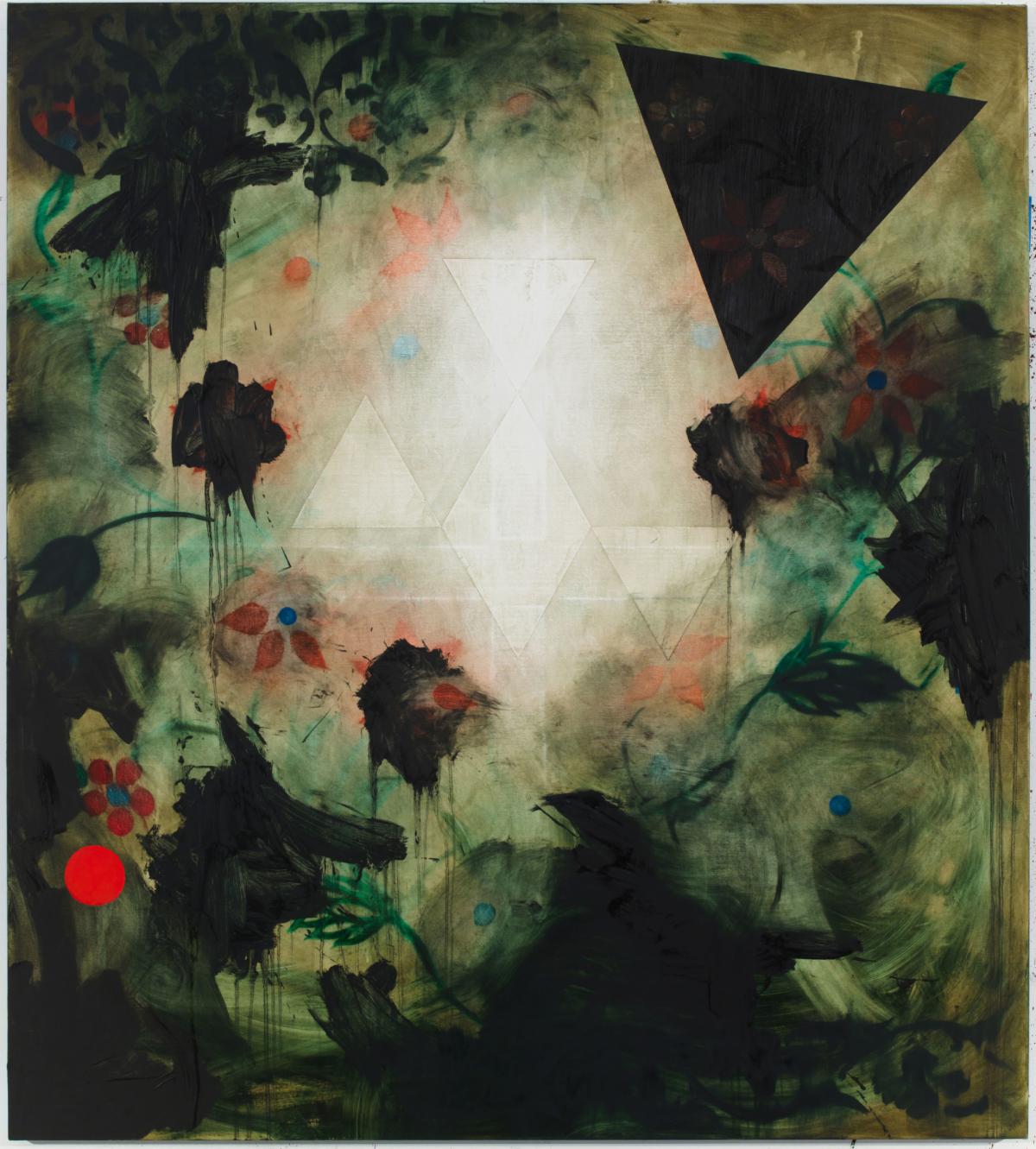 Shape language is a form of visual communication that utilizes familiar shapes to convey meaning or establish a connection. It is a technique used in character design and animation in order to give an initial idea of personality before the story has fully developed or has been released. Visual language can also be used to explain and make connections between art and the images we dream or imagine, as in dream states, we experience visual representations of emotions, much like when viewing works of art. Abstract art is based on visual and shape language, as it is an art form that uses line, color, proportion, and shape to convey meaning without realism. Early abstract artists such as Hilma af Klint and Wassily Kandinsky explored shape language before it was officially defined, which in turn inspired later abstract artists. You can see the inspiration from Klint and Kandinsky in the work of Jason Stopa, as well as Kamrooz Aram and many of the other abstract artists featured in the curated show “Angel of History”. The different types of shapes used are known to have specific emotional connotations. Round shapes are inviting and approachable, square shapes are strong and supportive, and triangular shapes are sharp and unpredictable. These shapes can be used in comparison or in contrast. Sometimes in character creation, designers will put contrasting shapes together to indicate an underlying nature -- such as a round and inviting person with sharp features, or a sharply-dressed individual with a round face. In the world of fine art, you'll find that abstract artists also often take advantage of the contrast. For example, artist Heather Lee Birdsong, who was featured in the January 2025 exhibition “Other World/s”, uses sharp polygons, but places them in natural environments so they become welcoming. Similarly, the glowing triangular form featured in the center of Kamrooz Aram’s painting Angelus Novus (Renegotiated) (2011) is inviting because of the holy light that surrounds it. Spiritually, triangles are used to represent the mind, body, and spirit, as well as masculine and feminine energies. The angel includes both masculine (upwards facing triangle) and feminine (downward facing triangle) shapes, allowing it to encompass the whole of the human spirit. The central triangular form is surrounded by round floral shapes and shadowed polygons that invite a sense of danger and unease. Despite its contrast, the nature of the triangle means that this angular angel still remains unpredictable, in alignment with the common rules of shape language. In this work, he puts shapes in conversation with each other, creating a variety of possible emotional responses. The rules of shape language here are observed, but Aram does not let them control his work. Circles can easily become black and cold voids, and squares can become restrictive boxes that categorize and classify. The language of shapes is ever-changing, especially within the world of abstract art. Visit the Schneider Museum of Art to see four pieces by Kamrooz Aram, featured in the show "Angel of History", currently on view until December 13th. Check out this interview with Aram, where he discusses his uses of color and shape, as well as environment -- an interesting connection to the work of Jason Stopa.