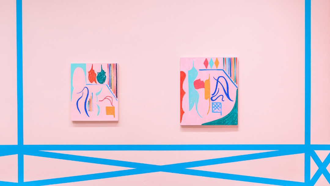 The environment an artist creates for displaying their work can inform their creative intent in interesting and vivid ways. From examining their work within the studio to the way museums put it on display, each place the artwork lives gives it character. In Jason Stopa’s solo exhibition at the Schneider Museum of Art, “Modern Language”, you’ll find a striking scene. Each wall in the Main Gallery has been painted in a mural, a geometric and calculated pink-and-blue lattice design that evokes barn doors made with painter’s tape. The mural creates a world for Stopa’s paintings to exist in. This is commonplace in Stopa’s exhibitions, as he believes that his work is heightened by its environment. As he writes in an article from art magazine Hyperallergic, “My own work often employs a similar language – a painted wall or 'stage' that will hold individual canvases while altering the spatial relationship between them, even as it references the imagery found in the paintings.” In exploring “Modern Language”, it is clear why Stopa employs this staging in his work. As an artist, Jason Stopa has a very clear idea of the artistic world that he wants to create. He is also a writer, curator, and art critic, so he spends his life thinking about and researching art. It is no wonder that his environments are so carefully crafted. Read Jason Stopa’s article in Hyperallergic below, and explore the world of “Modern Language” at the Schneider until December 13th.