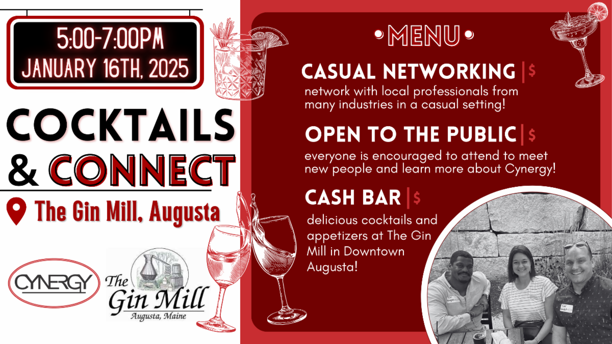 CYNERGY is starting off 2025 with a Cocktails & Connect social at the Gin Mill in Augusta on January 16th from 5-7PM!
