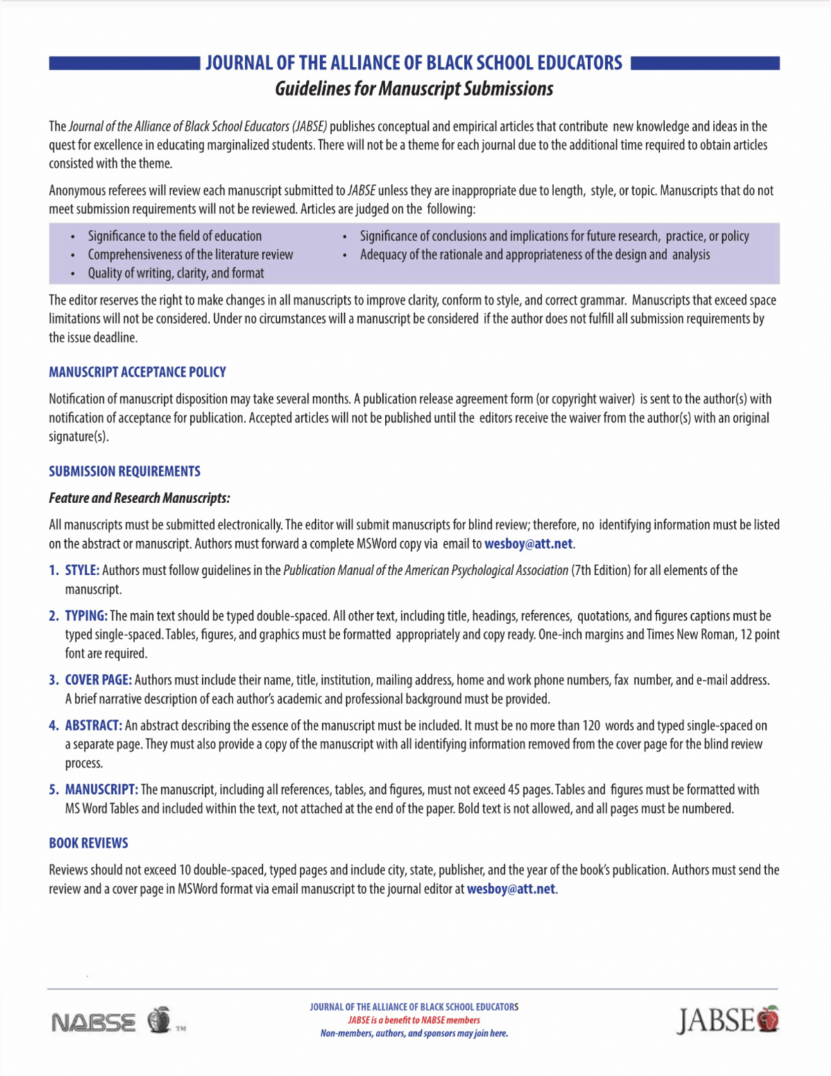 National Alliance of Black School Educators | 4005 Wisconsin Ave. NW #5704 | Washington, DC 20016-9997 US