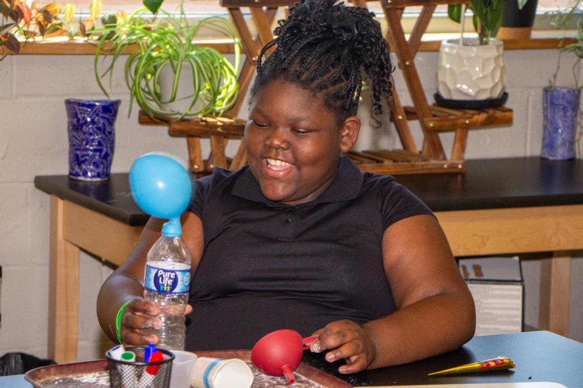 Project-based learning (PBL) is a teaching method where students learn by actively engaging in real-world projects to answer a complex question or solve a problem. This approach focuses on students acquiring knowledge and skills through inquiry, collaboration, and the creation of a tangible product or presentation, rather than through traditional lectures and tests. For this project, students selected issues they care about and are producing slideshows, posters, videos, and presentations to share their findings to educate their peers. For A’ryah E., the topic of environmental sustainability stood out. She chose to focus on plastic waste after learning how much plastic production affects the environment and harms animals. A’ryah said, "Nobody ever picks this topic and I wanted to pick something different. I like that we get to present it and make a slideshow and poster to inform my peers."