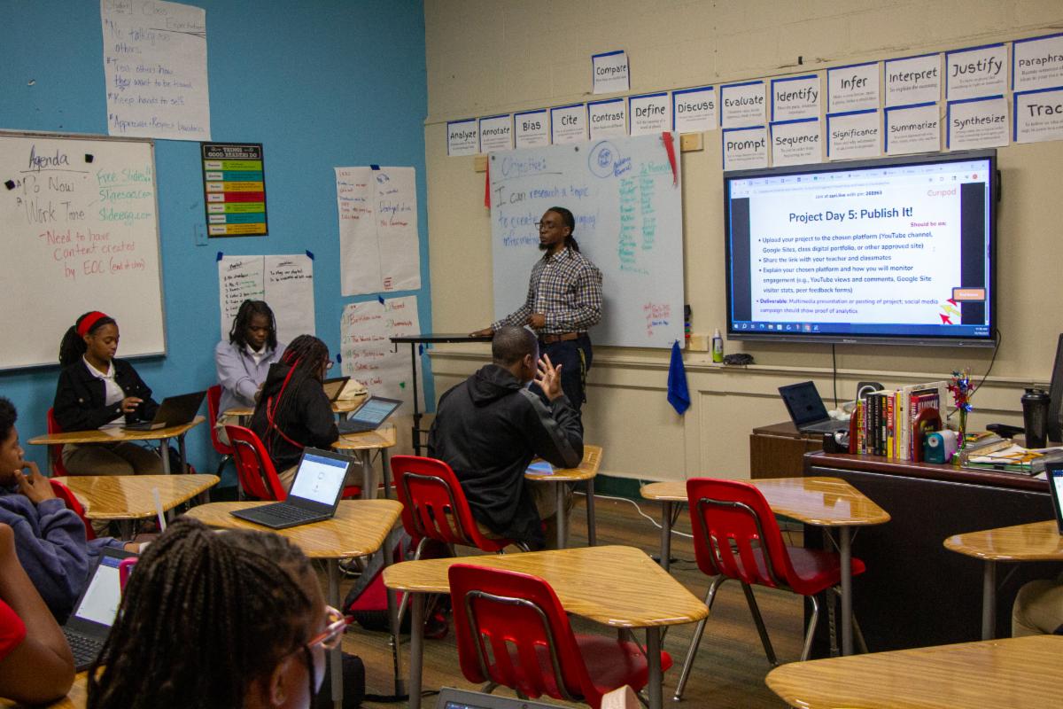 Eighth graders at Lift For Life Academy are learning how to turn personal experiences into powerful messages through a new project-based assignment. The goal of the unit is to help students research meaningful topics and create multimedia projects that encourage, inform, and motivate their peers. Project-based learning teacher Mr. Devin Chavers said: "I wanted them to think about the conflicts we all encounter on a daily basis, both internal and external, and then choose a topic that feels personal. The project gives them a voice and a chance to create something that can truly make an impact."