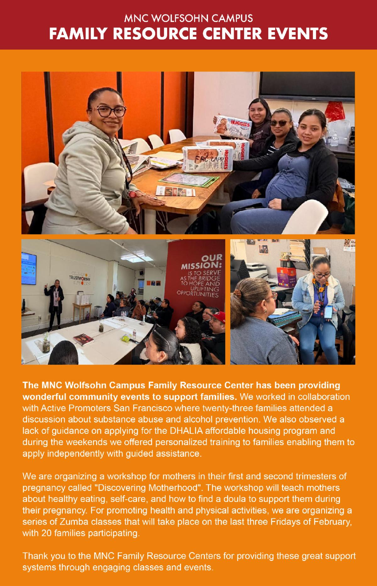 MNC’s Wolfsohn Campus hosted donors Kelly and Edward Simpson and San Francisco City College Board Member Luis Zamora on a campus tour. With MNC Board Member Christine Nevarez, staff and other leaders, they visited MNC Helen Fabela Chavez Campus to see early education at our newest campus and the MNC Evans Campus to meet our Housing and Homelessness Prevention team. All staff were welcoming and did a great job highlighting their MNC commitment and excellence.