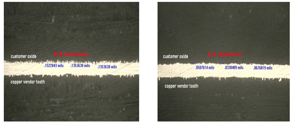 The barrier layer chemistry will protect the copper dendrites which are deposited during the nodulation process needed to support the mechanical anchor points for the resin during the lamination cycle.
