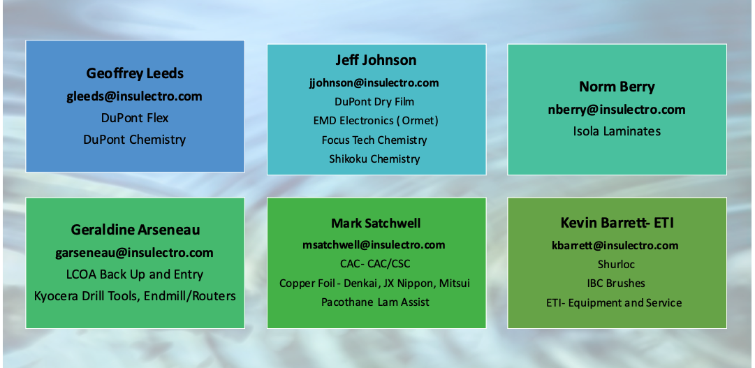 Kevin leverages his years of industry experience in Sales, supplier management, Equipment troubleshooting and Preventative maintenance to support the Insulectro Sales Team and our PCB fabricator customer base in all things Equipment.