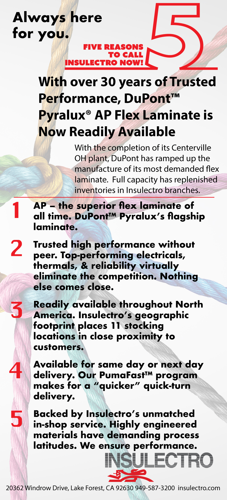 Insulectro recognizes the importance of maintaining adequate inventory to begin work. Designers know when you need it, you need it. Using the link insulectro.com/puma-fast/, you can see what PumaFast™ and standard materials we stock to get you up and running.