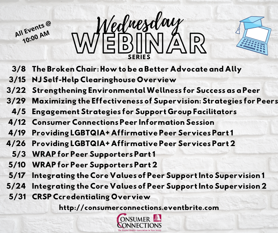 Consumer Connections is holding three (3) sessions of training in 2023, and will begin accepting applications for session 2 on 4/10/23. Session 2 training will occur from June 13th through August 8th.