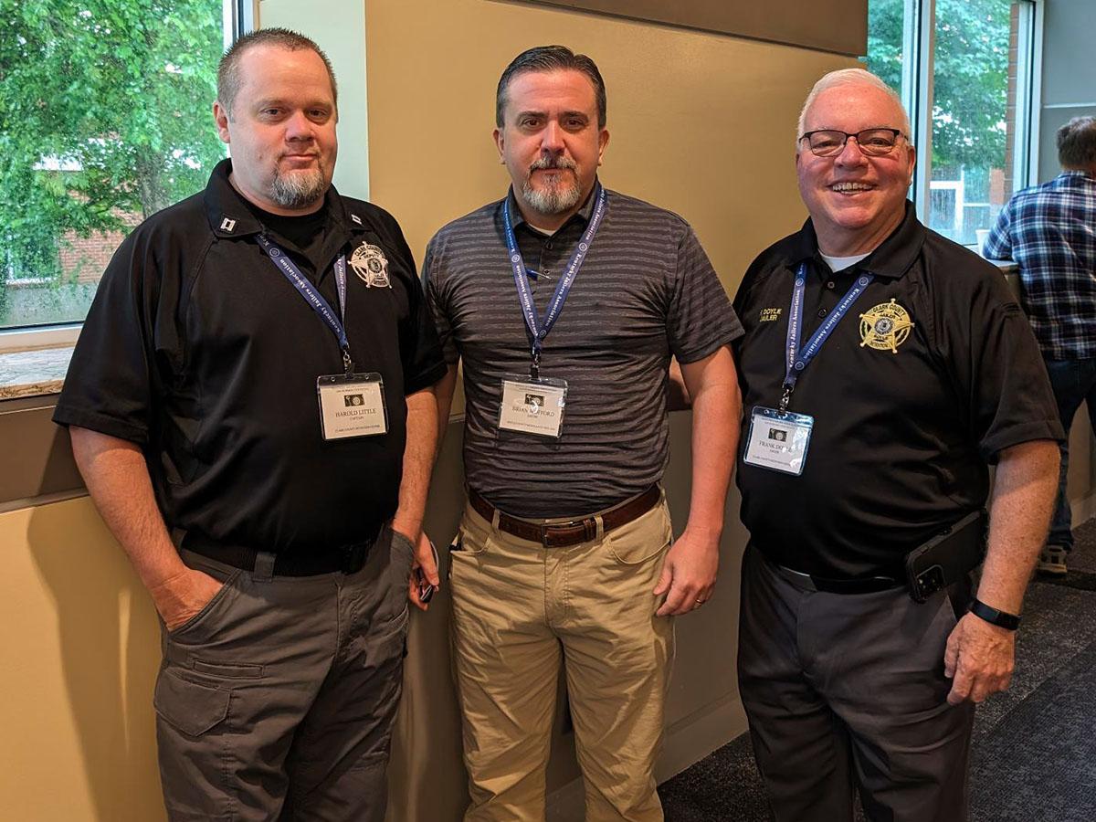 Clark County Detention Center’s Harold Little, left, poses with Boyle County Jailer Brian Wofford and Clark County Jailer Frank Doyle. | |