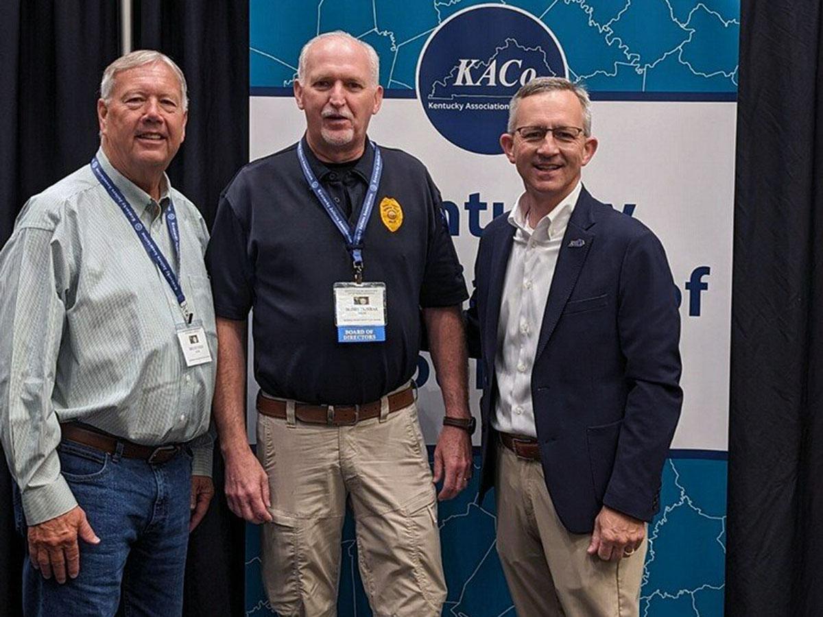 Henderson County Jailer Bruce Todd, left, Russell County Jailer Bobby Dunbar and KACo Executive Director Jim Henderson | |