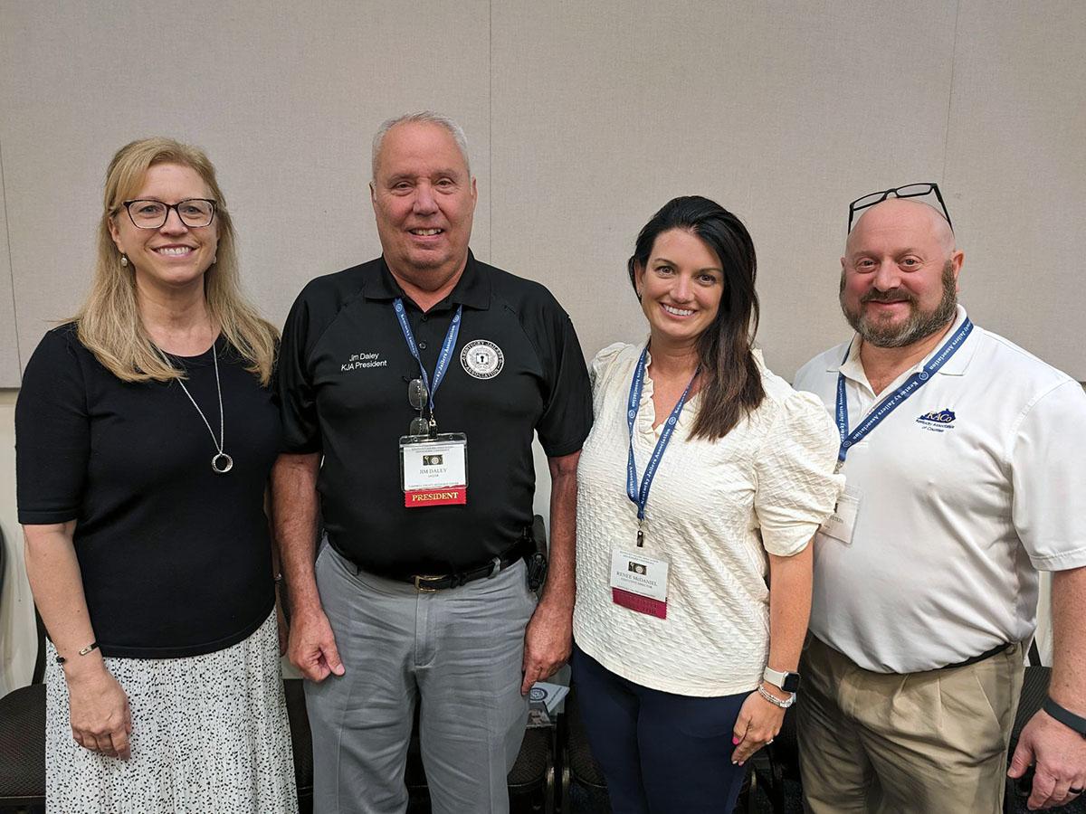 KACo’s Shellie Hampton, Campbell County Jailer and KJA Immediate Past President Jim Daley, KJA Executive Director Renee McDaniel and KACo’s Rich Ornstein | |