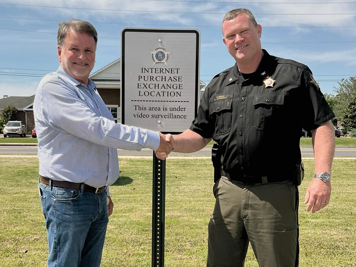 Judge/Executive Kevin Spraggs and Sheriff Matt Hilbrecht announced Marshall County’s first internet purchase exchange location. The designated area, under constant video surveillance, may be used by individuals buying or selling items online that need a safe place to meet to exchange purchased items. | |