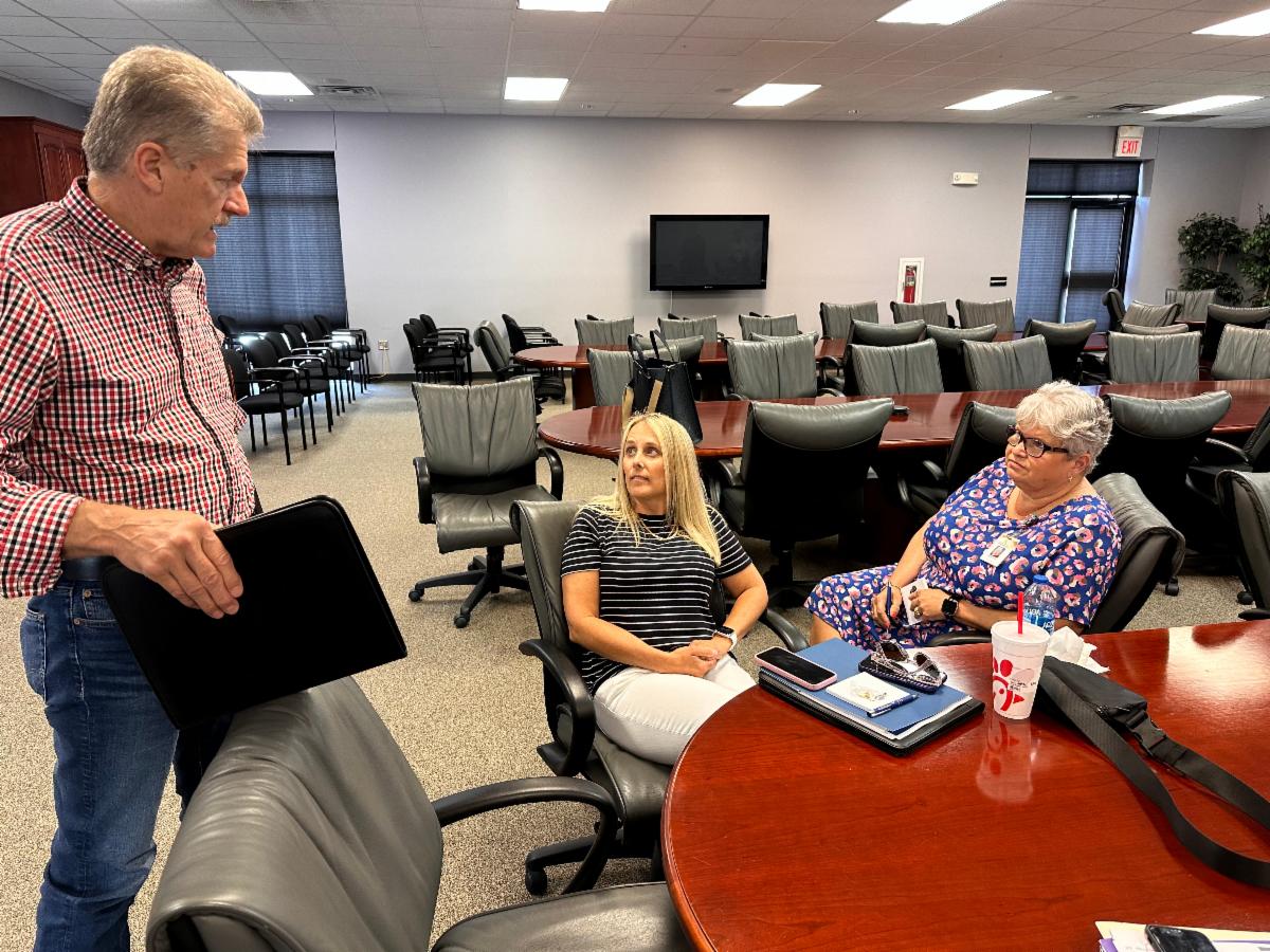 Muhlenberg Judge/Executive Mack McGehee talks with Lyon County Judge/Executive Jaime Smith and Caldwell Circuit Court Clerk Christie Storm at this week's KACo Listening Tour stop at the Pennyrile Area Development District. | |