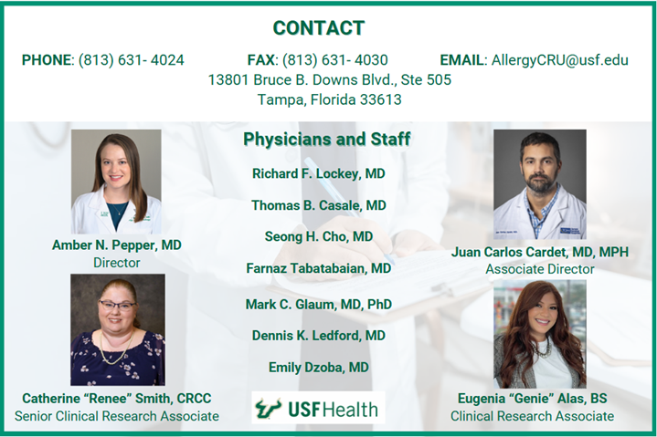 | | Photo: Thomas Casale, MD, Catherine Renee Smith, CMA,CCRC, Eugenia Alas, BS, Amber N. Pepper, MD, Juan Carlos Cardet, MD, MPH | | | |