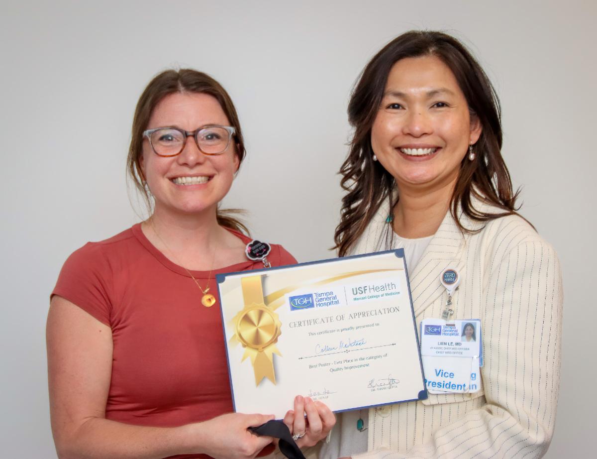 | | Congratulations to Dr Colleen McIntosh and Dr. Ashley Perry for taking the 1st and 2nd prizes on their Quality Improvement projects at the abstract competition for the 2025 USF/TGH Hospital Medicine Conference. | | |
