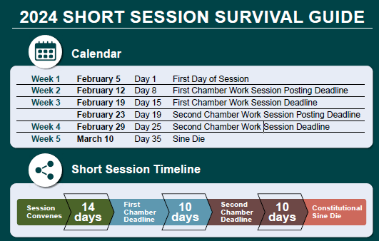 Recordarán esta guía que nuestra Oficina Legislative de Política e Investigación compiló hace algunas semanas. ¡Pueden ver que la próxima fecha límite es hoy, lunes 19/2/2024! La Fecha Límite de Sesión de Trabajo de la Primera Cámara significa que un proyecto de ley en un comité de política debe ser votada antes de las 11:59 p. m. Si no lo hacen, ese proyecto de ley también está muerto.