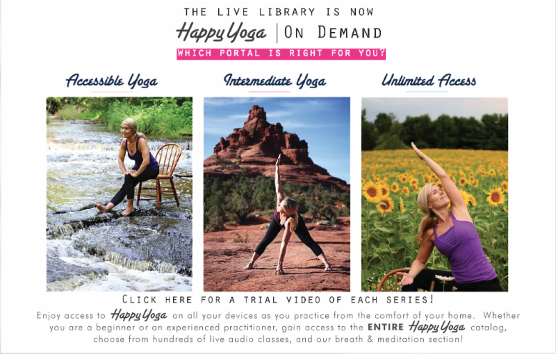 Each portal provides you with a customized experience including our Gentle Yoga Portal, for anyone wants to know how to start a practice and regular yoga seems like too much and still enjoy the benefits of yoga without getting out of your chair! Whether you have disabilities, injuries, problems with balance, weight challenges or inflexibility, this is the practice is for you.