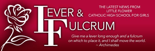 Lever and Fulcrum,” borrowing from the philosopher, Archimedes, who is quoted: "Give me a lever long enough and a fulcrum on which to place it, and I shall move the world." In our case, the Fulcrum is the educational opportunities we can bring to our students and the lever…well, that is YOU, Little Flower Alumnae and Support Network Family! You are the machine used to increase the unstoppable force that is Little Flower! You transmit energy to nourish our Little Flower organism and make her sustainable. Thank you for being part of this life force that radiates about our building and holds great promise for Little Flower’s future.